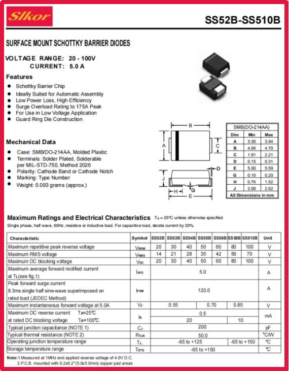 在電子元件構成的江湖中,各類器件各懷絕技,有的力大無窮,有的精巧靈敏。而薩科微slkor推出的SS56B肖特基二極管,宛如一位身懷絕世輕功的高手,憑借其獨特“本領”,在電子世 界中縱橫捭闔,成為眾多電路設計中的關鍵角色。