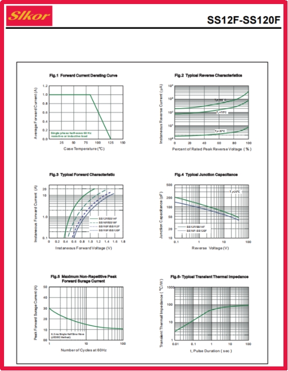 薩科微Slkor肖特基二極管SS14F相關參數