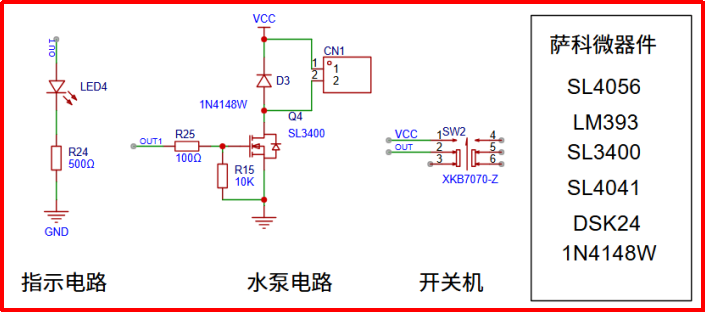 這里用了多顆薩科微,比如物料薩科微肖特基DSK24.最大直流反向耐壓40V 2A最大整流電流,根據負載電流選型時候計算在這里完全夠用了。薩科微SL4041是一款P溝道MOS管導通內阻只有30m?,耐壓40V功耗1.4W等特點在一般消費場景完全夠用,賣的也是非常火熱,用戶也可以在薩科微品牌官網m.jj-led.cn查看對應的規格書。