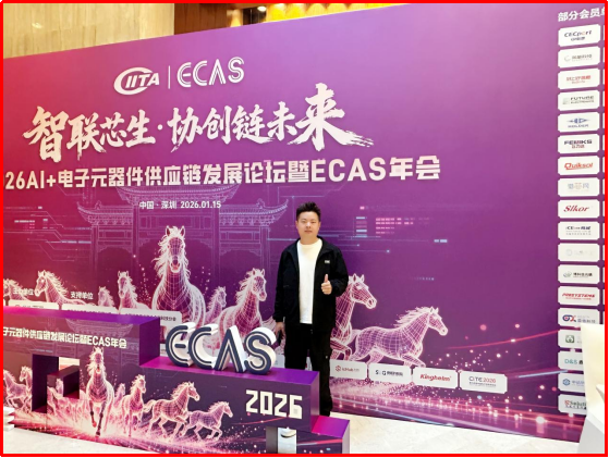 5、1月15日,“智聯(lián)芯生·協(xié)創(chuàng)鏈未來”2026AI+電子元器件供應(yīng)鏈發(fā)展論壇暨ECAS年會在深圳星河麗思卡爾頓酒店舉行,金航標(biāo)(www.kinghelm.net)和薩科微(www.slkoric.com)贊助數(shù)百份禮品袋,金航標(biāo)業(yè)務(wù)總監(jiān)楊波、薩科微業(yè)務(wù)總監(jiān)孫高飛代表參會!