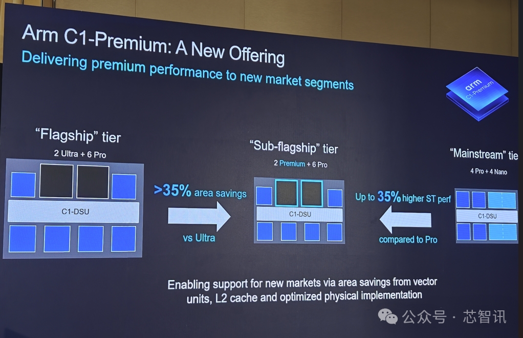 C1-Premium是 Arm 首款次旗艦處理器CPU,追求最高的PAA(性能、功耗、面積)。