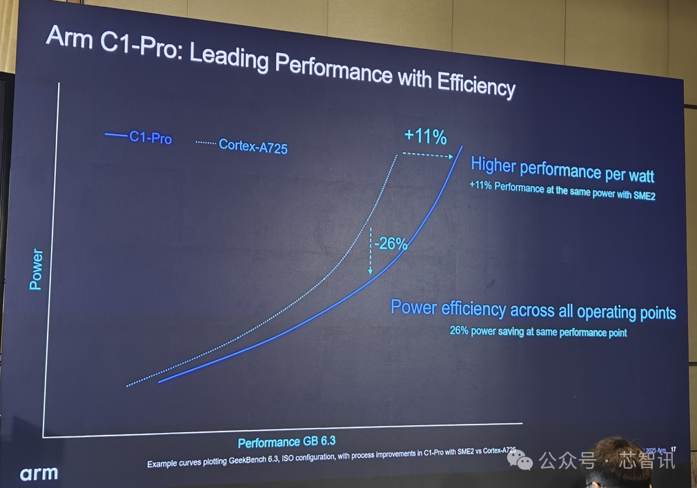C1-Pro的定位是最高能效的大核。在微架構層面,Arm C1-Pro 引入了增強型分支預測和內存系統更新,尤其適用于實際用例中的多任務處理。