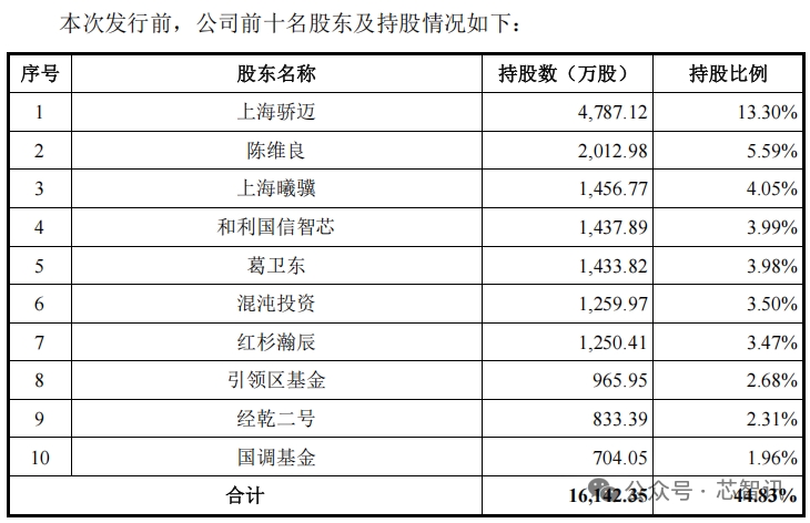 截至本招股說明書簽署日,沐曦股份擁有多達(dá)124位股東,其中上海驕邁直接持有公司 13.30%的股份,為發(fā)行人第一大股東。