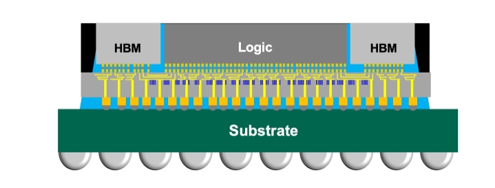 包含 GPU 核心和 HBM 等小 die,放在高精度硅片 interposer 上,保持高帶寬連接能力。