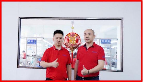 金航標(biāo)總經(jīng)理宋仕強(右)與生產(chǎn)基地劉廠長