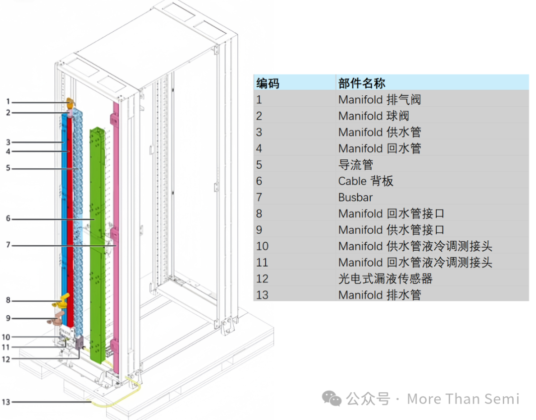 對(duì)于服務(wù)器機(jī)架中液冷的拆解,查了很久沒有查到NVL72的很好的圖,下面這個(gè)圖是參考的ZOMI大神的一個(gè)圖,這個(gè)是華為的服務(wù)器的拆解,但機(jī)架其實(shí)差不太多,也可以供大家參考,了解在Rack層面,哪些是跟液冷相關(guān)的。