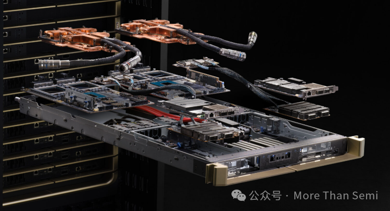 下面從各個(gè)tray的視角來拆解一下液冷。下面這個(gè)圖是一個(gè)GB200的compute tray的拆解。