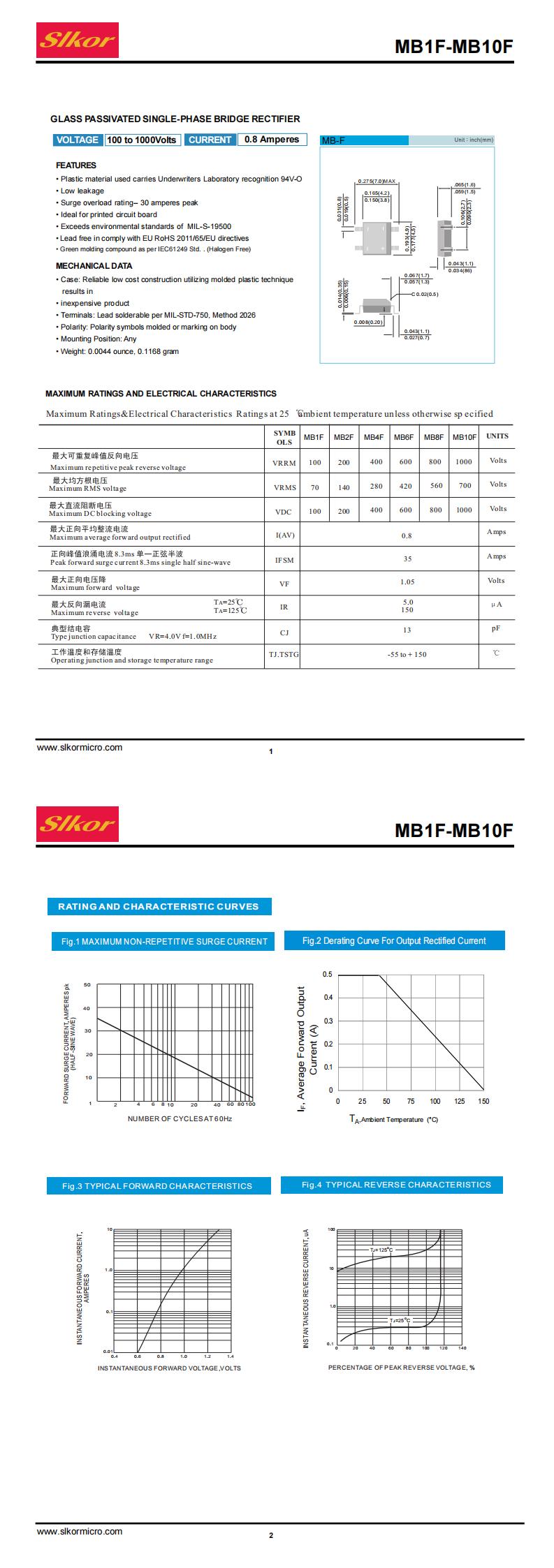 產(chǎn)品名稱:薩科微slkor整流橋MB10F