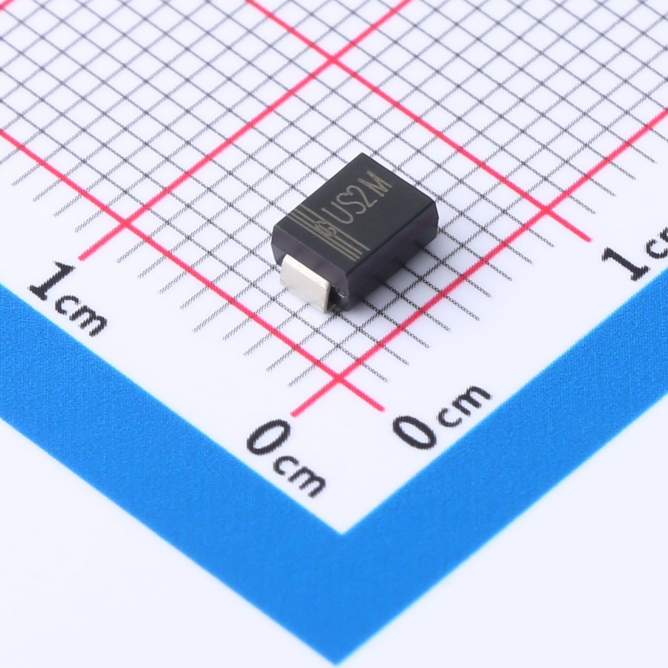 超快恢復二極管US2M VRRM(V):1000V IO(A):2A VF(V):1.65V@2A IR(A):5μA@1kV trr(ns):75ns Package:SMA